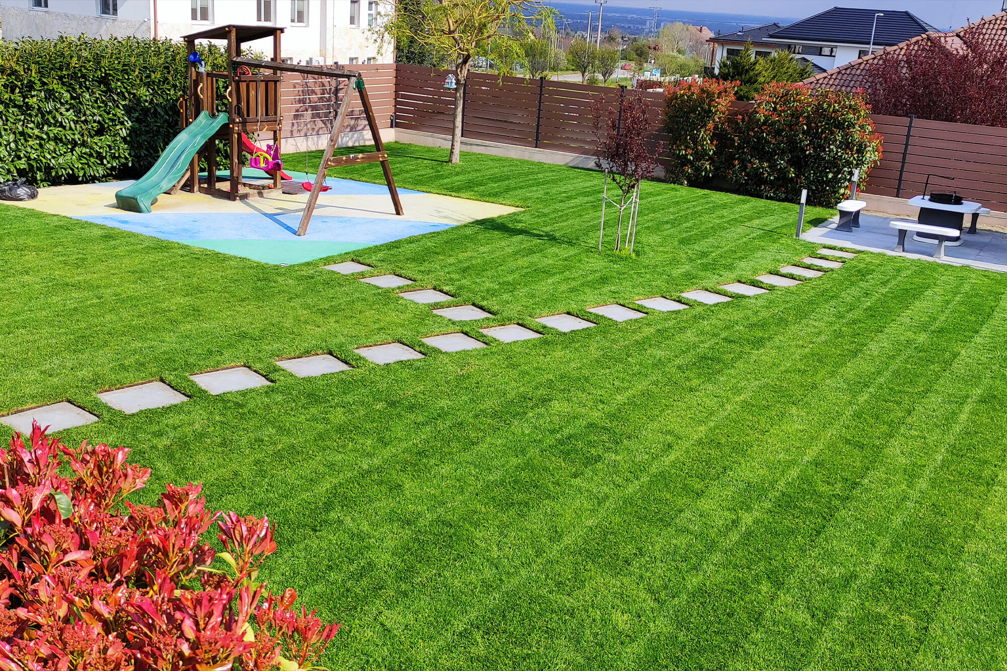 A pázsit szép és egészséges állapotának fenntartásához nagyon fontos a megfelelő gyepápolás. Ezek között vannak gyakran végzett (pl. öntözés, fűnyírás), szezonális (pl. tavaszi talajlazítás, őszi gyepszellőztetés, évszaknak megfelelő tápanyagozás stb.) és speciális munkálatok (pl. üreges gyeplyuggatás, homokszórás, mélylazítás stb.). A végeredmény nagyban függ a megfelelő eszközöktől és gépektől, illetve azok szakszerű használatától. Korszerű gépparkunknak és profi csapatunknak köszönhetően minden gyepápolási feladatra nyújtunk megoldást, a terület méretétől függetlenül.